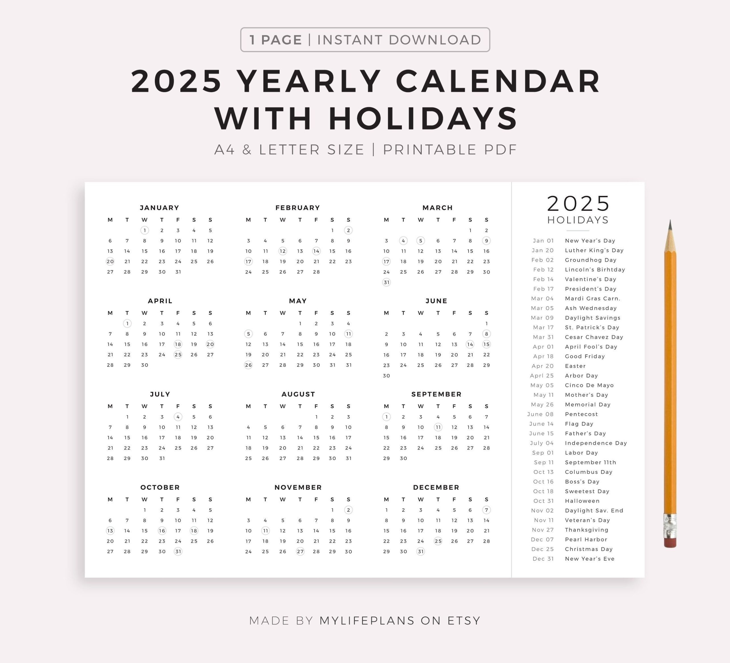 So why wait until the last minute to get organized for 2025? Start browsing for a one-page printable calendar with holidays now and take the first step towards a more productive and stress-free year. With a little bit of planning and a lot of creativity, you can make 2025 your best year yet!