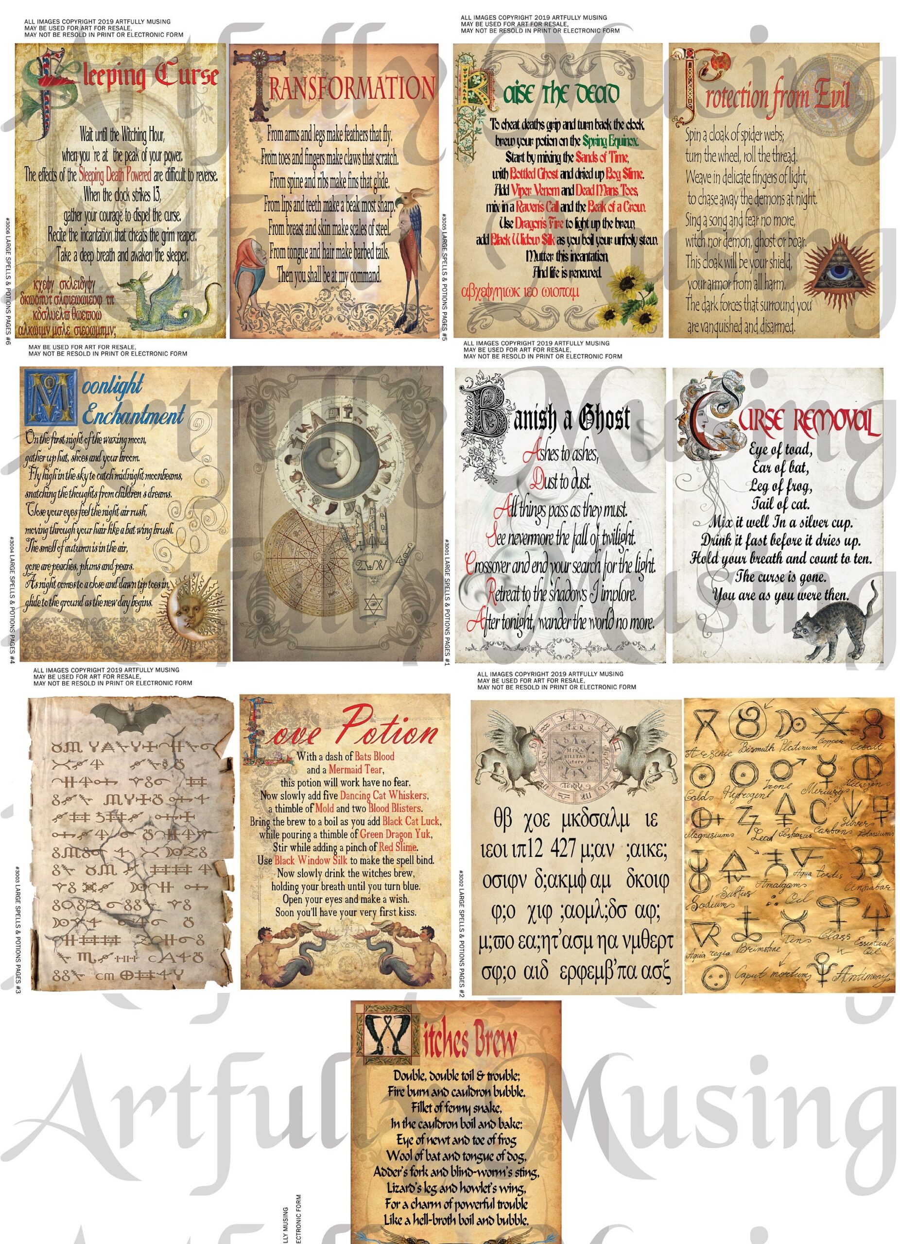 Large Magical Potion Spell Book Pages 1 7 Sheet Set Spells Potions Charms Halloween Collage Sheet Printable Instant Download 3004 Etsy New Zealand