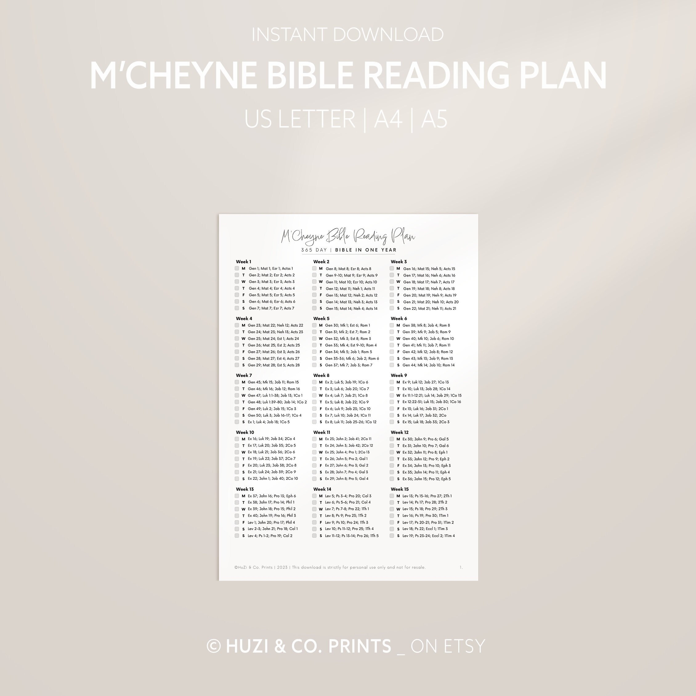 M cheyne Bible Reading Plan Bible Reading Plan Printable 1 Year Bible Plan Read The Bible In A Year Bible Tracker A4 A5 US Letter Etsy