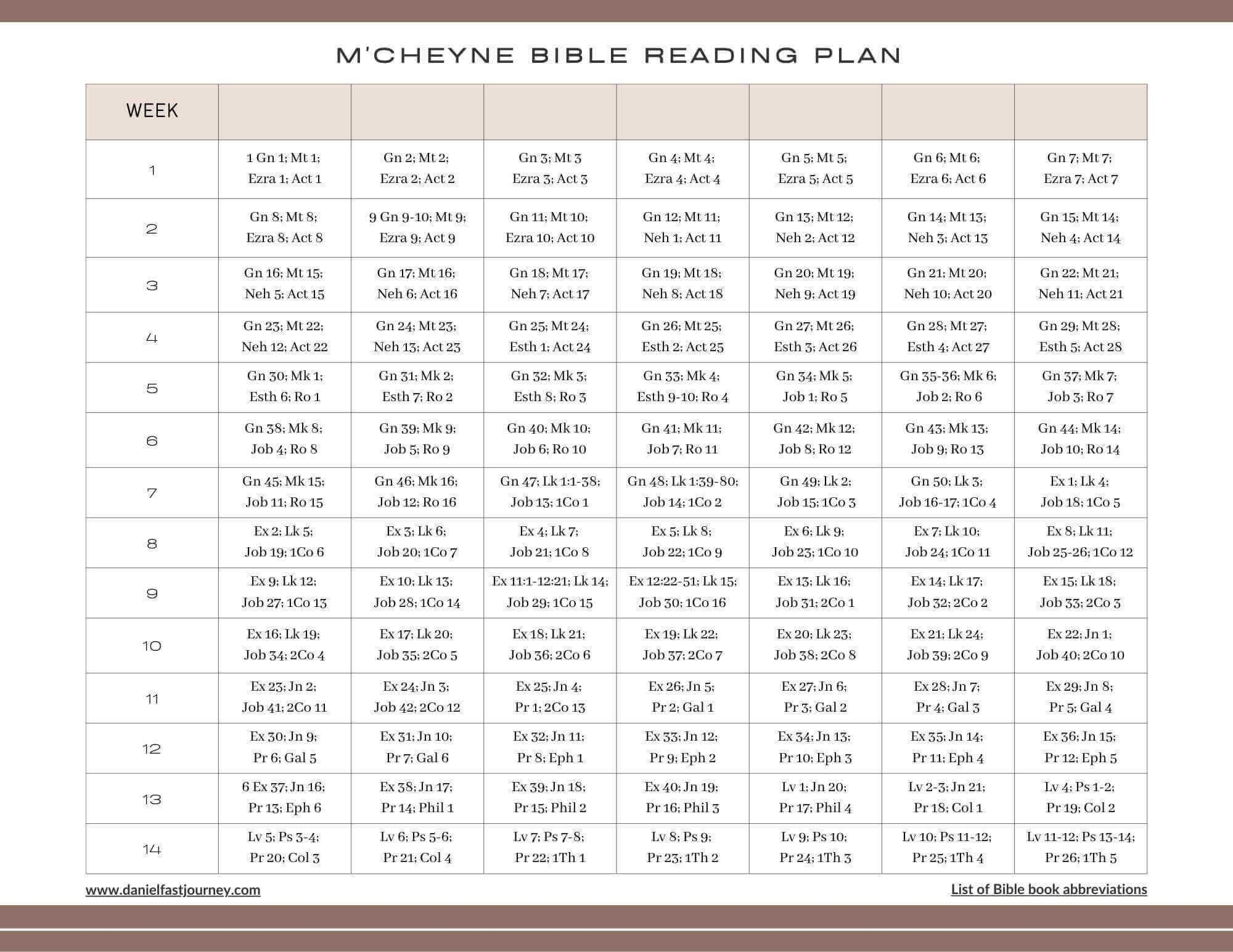 M Cheyne Bible Reading Plan One Year Daniel Fast Journey