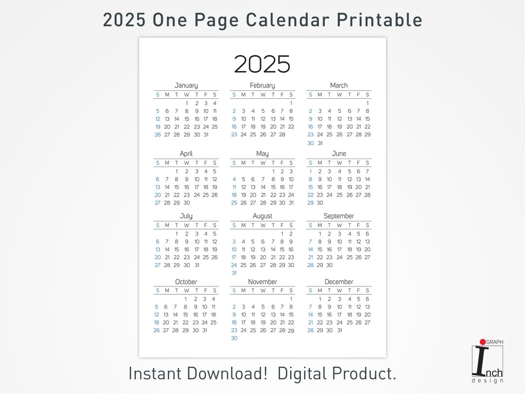 2025 Printable Calendar 12 Months One Page Calendar Wall Calendar 2025 Desk Calendar Minimalist Home Calendar Decoration Etsy